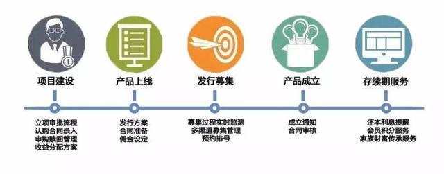 产品开始募集就全程实施监控募集过程,下沉到每个团队和个人的募集目标、进度。募集完成及时根据产品收益分配情况提醒客户还本付息。